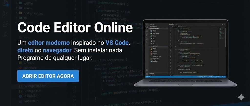 Editor de código online inspirado no Visual Studio Code para programar direto no navegador.